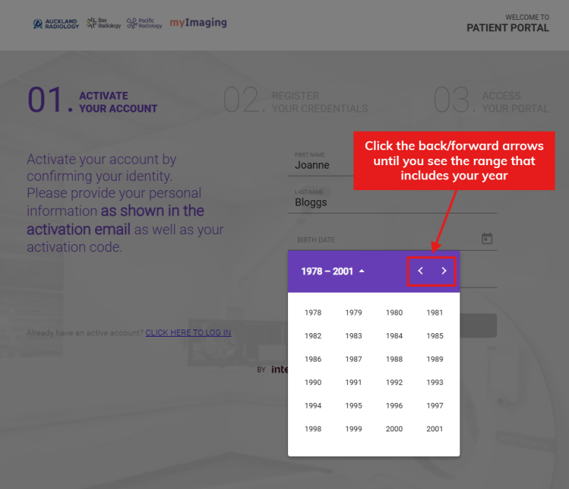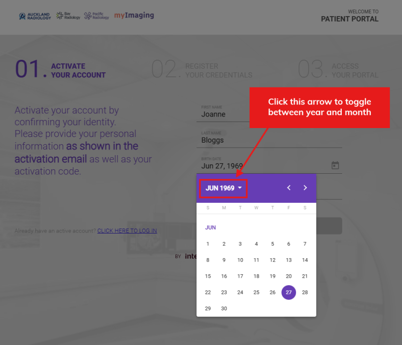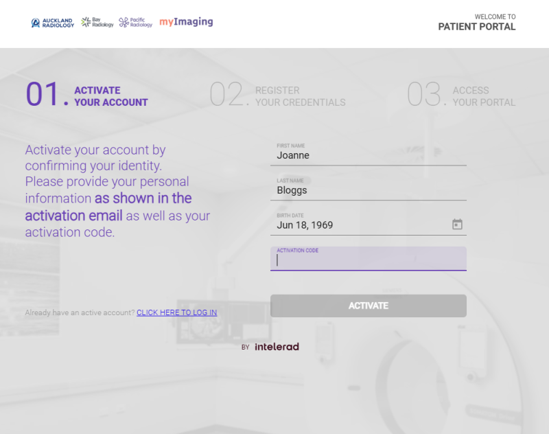 Click on the ‘Activate Account’ link, this will direct you to the myImaging Patient Portal where you can complete your registration.